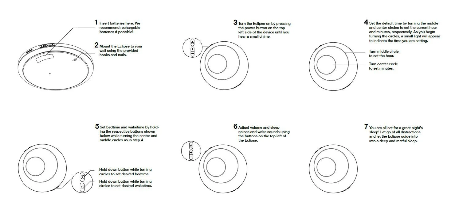 After being set up, the clock will shift colors and dim as it gets closer to the end of your day. When the times you set come up, Eclipse will chime to let you know.